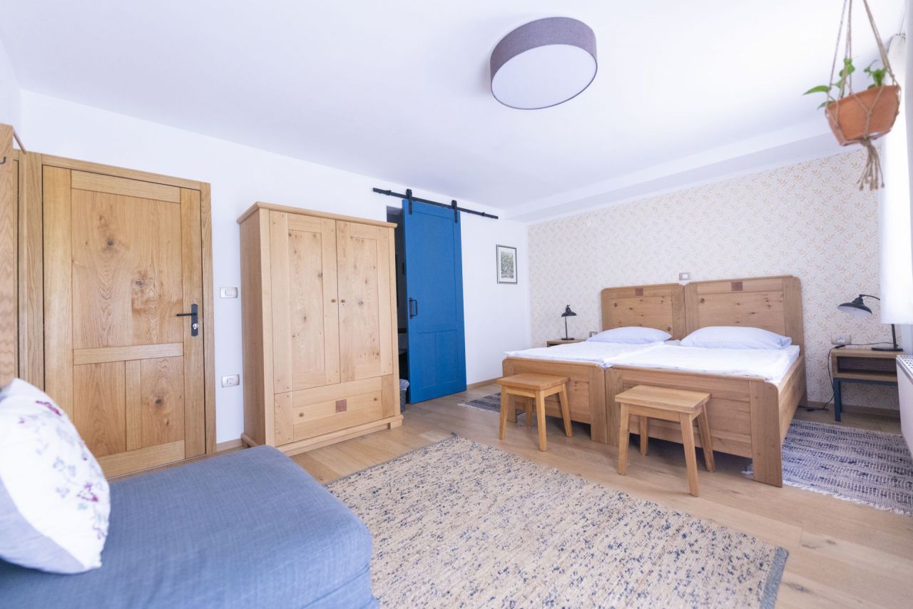 There are 15 rooms available, including 7 double rooms, 6 single rooms and 2 apartments. All are category 4 apples.