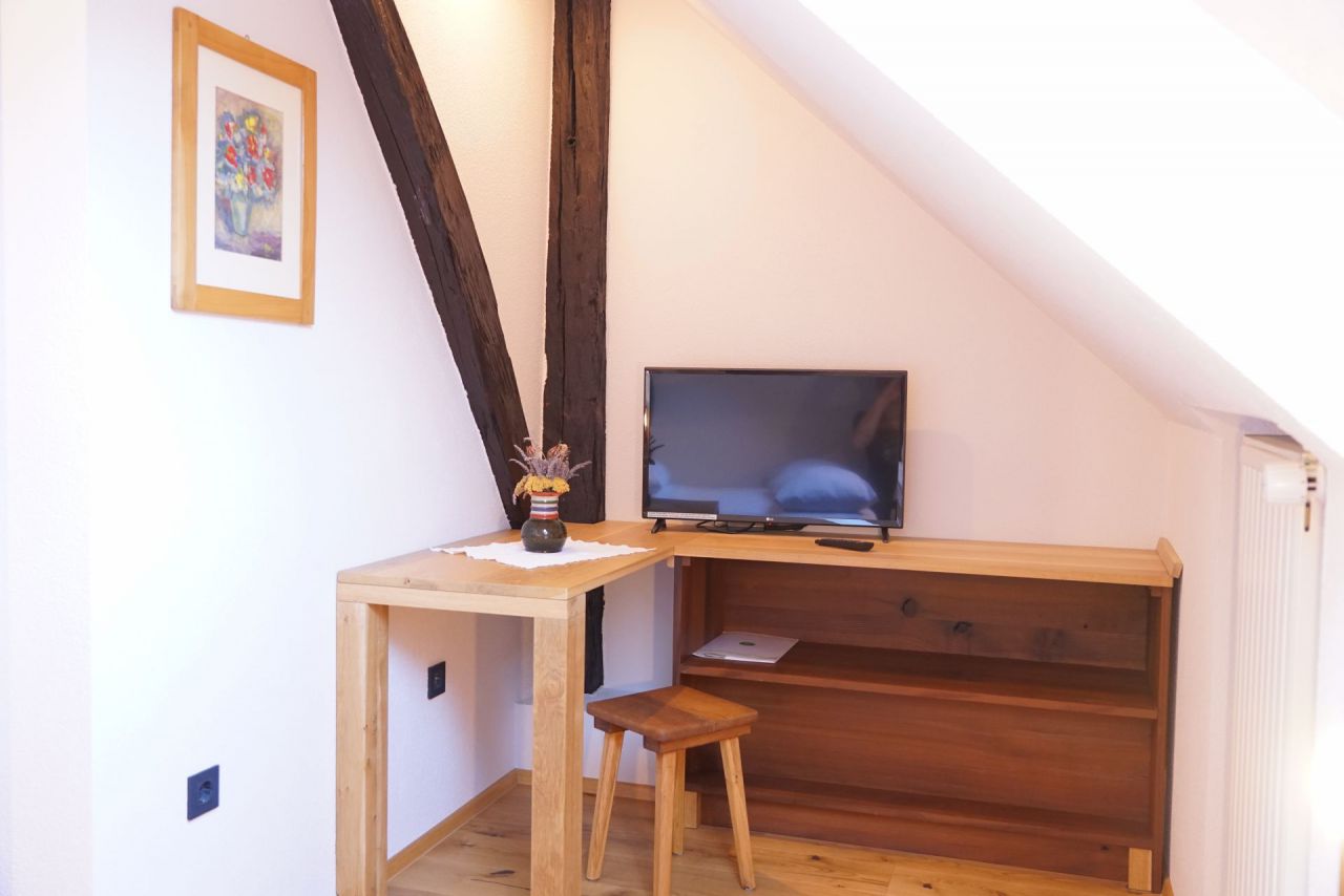 it is located on the 2nd floor and has an attic, it has one bedroom and a private bathroom, pets are allowed. Double room 6 measures 15m2.